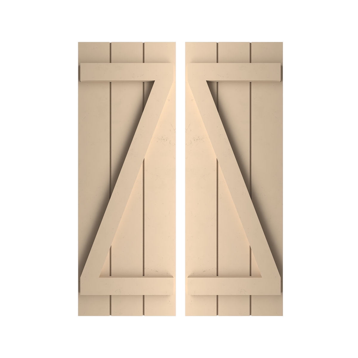 Ekena Millwork 16 1 2 W X 84 H Rustic Three Board Joined Board N Batten Sandblasted Faux Wood Shutters W Z Board Per Pair Primed Tan Walmart Com